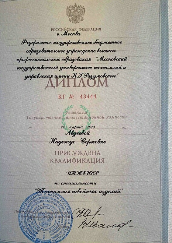 Технология швейных изделий, Инженер